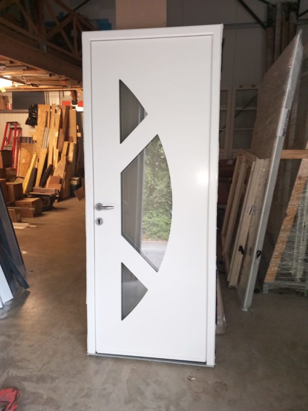 Porte d'entrée MONOBLOC - Alu RAL Blanc 9016 MAT Panneau vitré 3 vitrages - épaisseur 79mm - poussant droit (vue extérieure) Quantité : 1